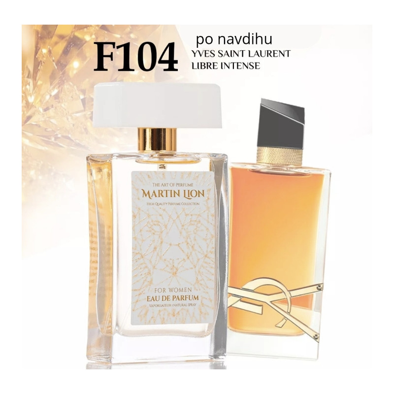 Martin Lion's F104 INTENSE Eau de Parfum za ženske je po sestavi podoben dišavi Yves Saint Laurent Libre Intense. Vonj je bogatejši in živahnejši.